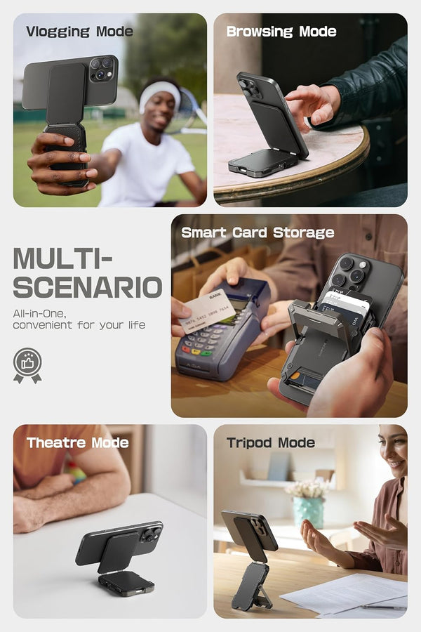 This magnetic wallet combines secure card storage, a stable kickstand, and RFID protection so daily carry becomes simpler, safer, and more functional.